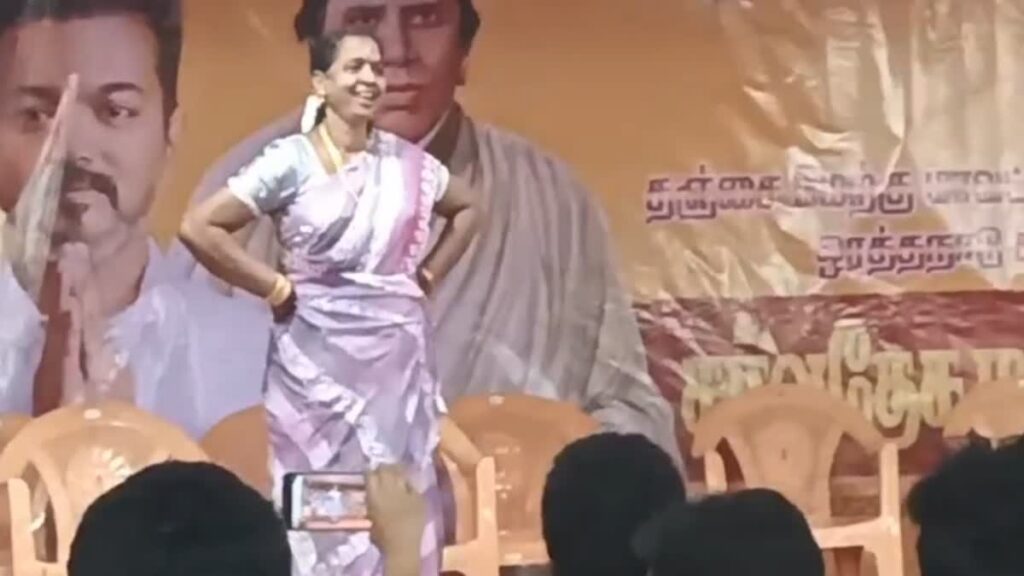 தவெக விழாவில் நடனமாடிய தலைமை ஆசிரியை கிருஷ்ணவேணி.