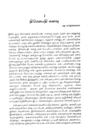 வாசிக்கத் துவங்கும்போது மிக சாதாரண கதைபோல தோன்றும் கதை திரௌபதி கனவினில் தான் அசாத்தியமான கதையாகிறது. கனவின் கதைகளை எழுதினால் என்னவெல்லாம் பிறக்கும். நிறைவேறாத பெரும் வேட்கையையே பலரும் கனவாக காண்கிறார்கள். திரௌபதி கனவில் அவள் தங்க வைர நகைகள் பூட்டி வீதியில் இறங்கி நகர் வலம் வருகிறாள். ஒவ்வொரு வீட்டு வாசலிலும் பெண்கள் ஒய்யாரமாகப் போடப்பட்ட நாற்காலியில் கால் மேல் கால் போட்டு அமர்ந்திருக்கிறார்கள். அவர்களுக்கு அருகில் கைகட்டி புருஷர்கள் நிற்கிறார்கள். வீட்டிற்குள்ளும் புருஷ நடமாட்டம் இருக்கிறது. ஆனால், அவர்களைப் பார்க்க சகிக்கவில்லை..அகோரமாக இருக்கிறார்கள். பெண்கள் கட்டளையிட்டதும் மறுநொடியில் ஆண்கள் அந்த வேலையைச் செய்து முடிக்கிறார்கள். சட்டென அவளின் கனவு தெருவில் இறங்கியது. தெருவில் இரண்டு ஆண்கள் நடமாடுகிறார்கள். அவர்களுடைய கழுத்தில் மணி ஒன்று கட்டப்பட்டிருக்கிறது. அந்த மணி அவர்கள் நடக்க நடக்க ஓங்கி ஒலிக்கிறது. அவர்கள் திரௌபதியைப் பார்த்தவுடன் தலைகவிழ்கிறார்கள்.